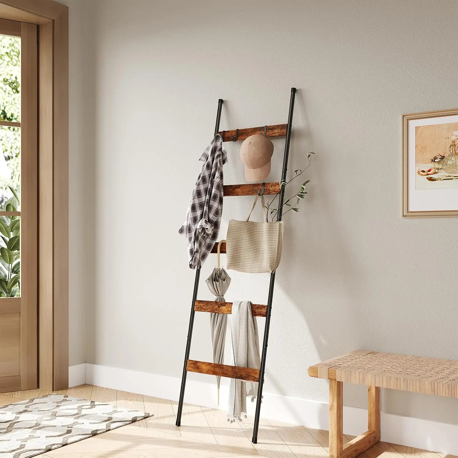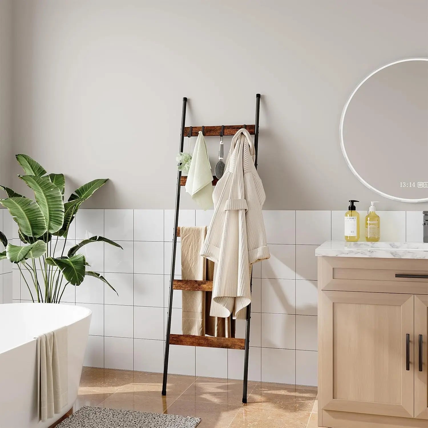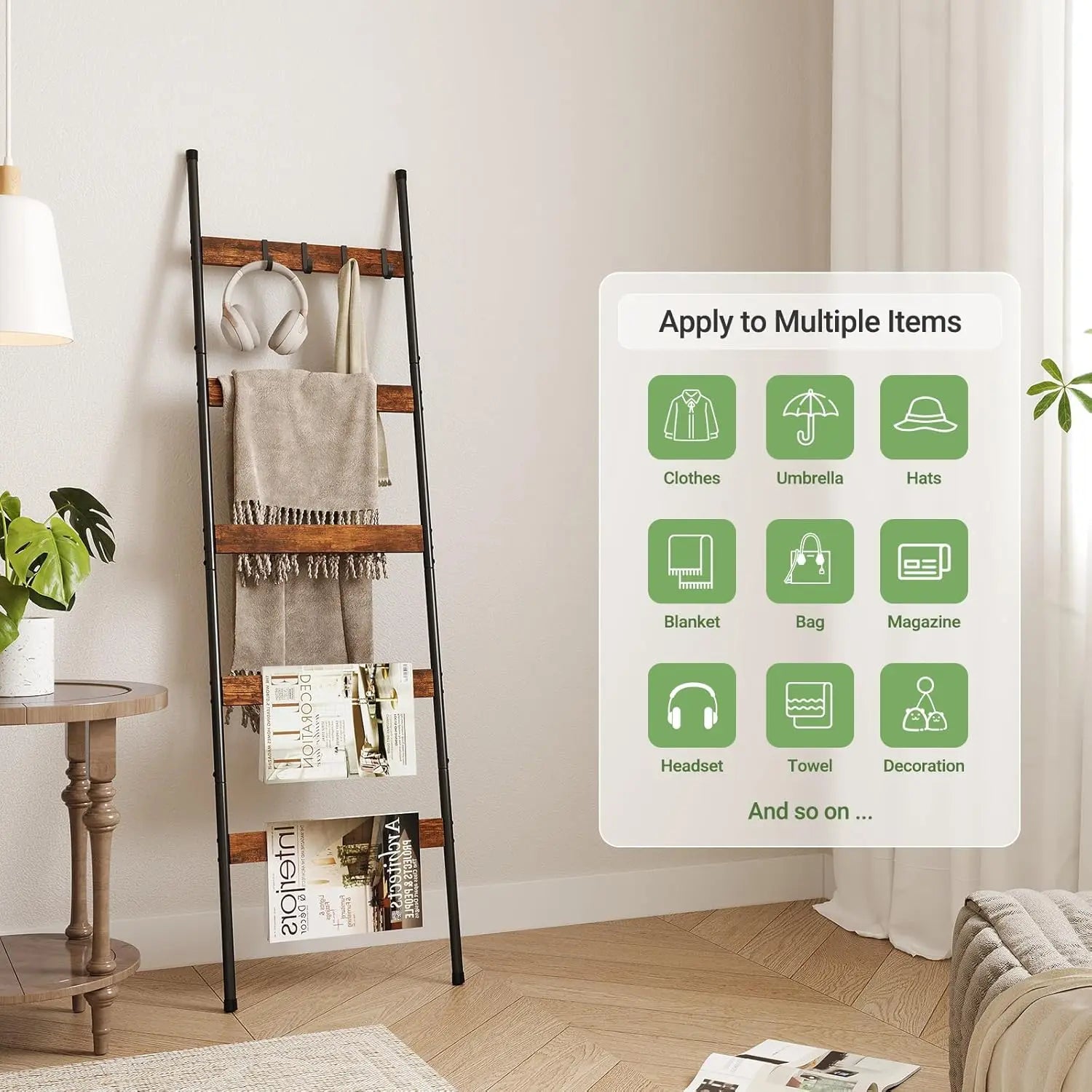 Transform your home decor with this versatile 5-tier wooden blanket ladder, designed to add rustic charm and practical storage to any room.