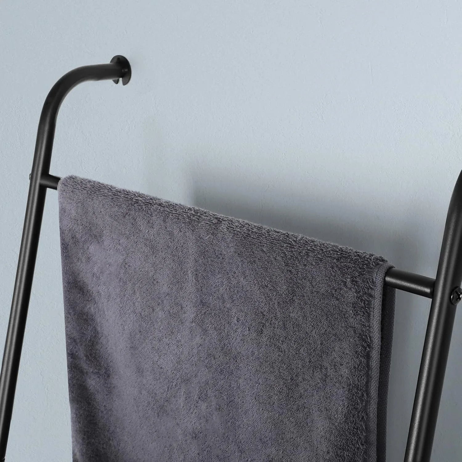 Our 5 tier bathroom towel rack is made of high-quality steel material so that it can be used for a long time within its bearing capacity. The wall-leaning freestanding design would not take up much of your room space while it can store much of your towels or blankets.