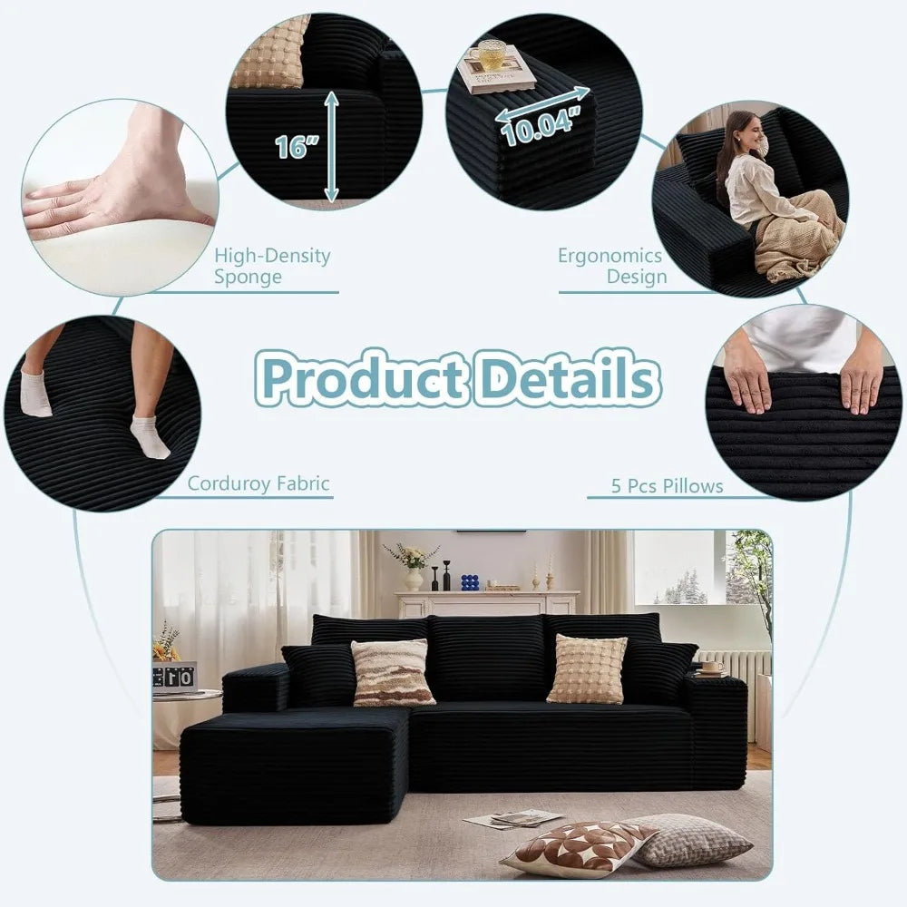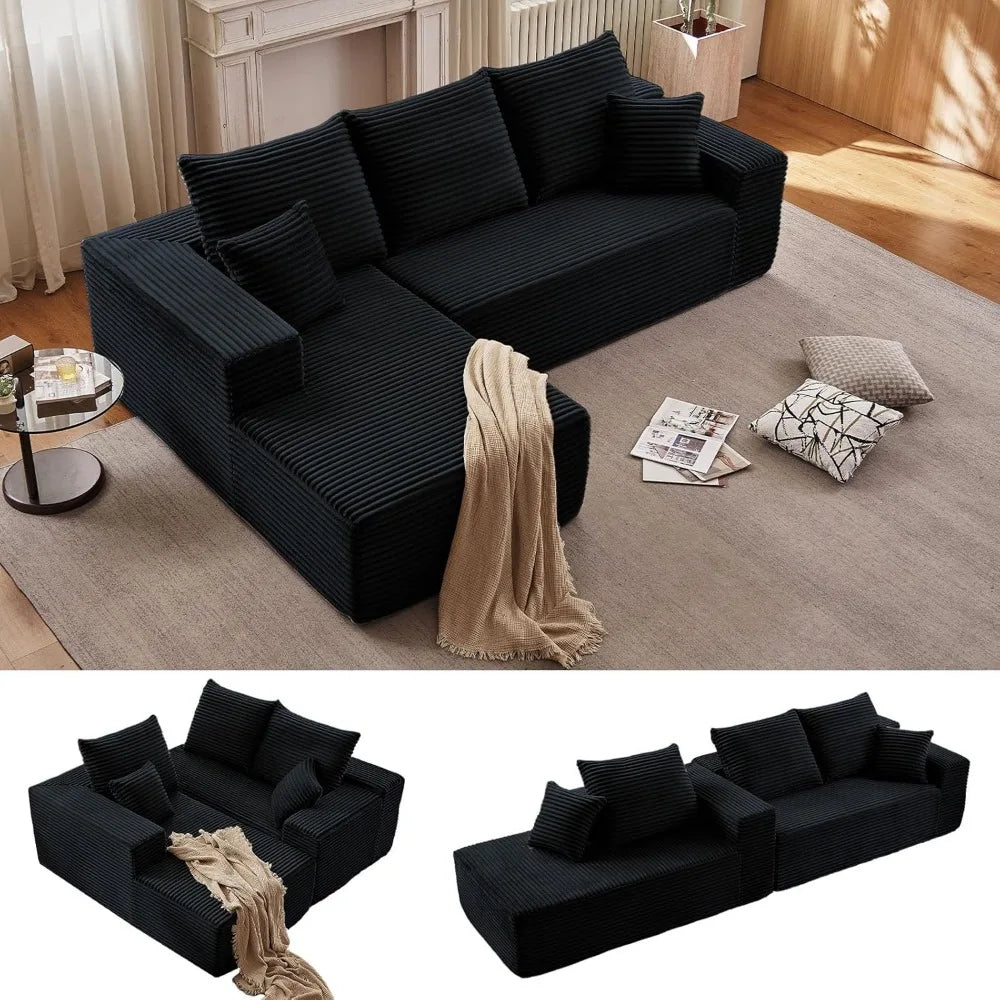 Experience the versatility of our minimalist modular sectional sofa, designed to fit seamlessly into any space and adapt to your lifestyle. The L-shaped design comes in 2 pieces, maximizing your space while offering endless configuration options.