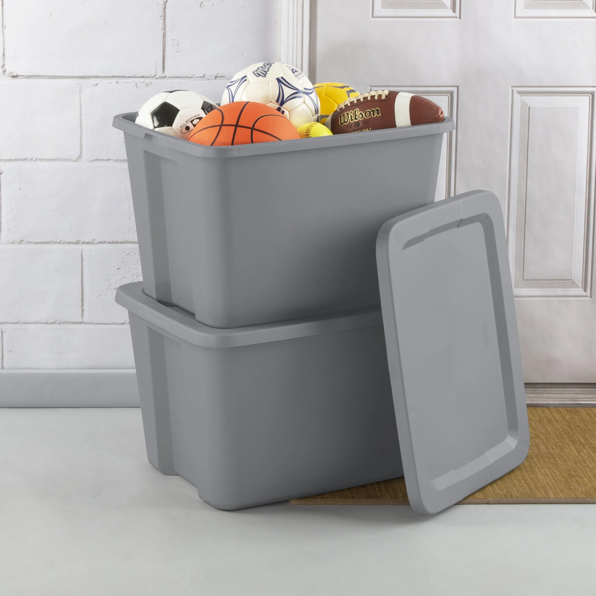 18 Gallon Tote, Plastic Storage Bin with Snap-on Lid, Gray, 8 Count