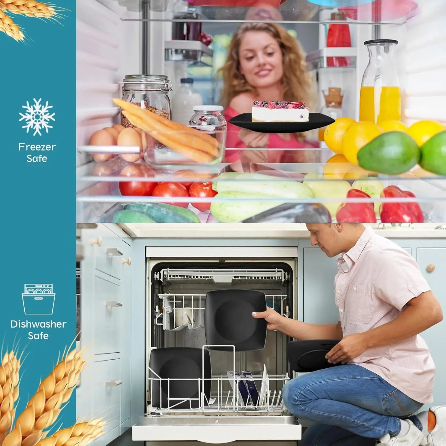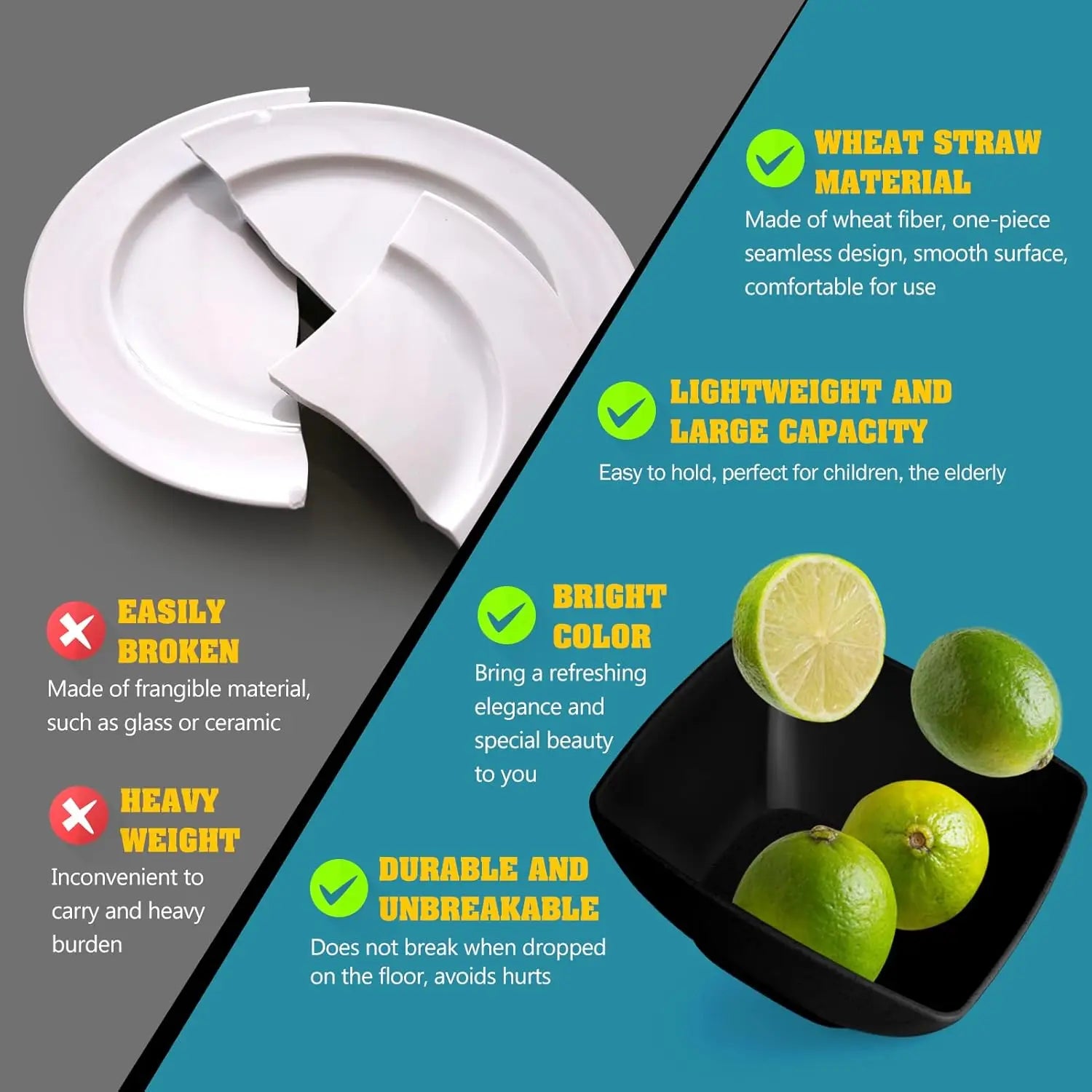 56-piece With Flatware Kitchen Plastic Wheat Straw Square Dinnerware Set for 8, Unbreakable Dinner Plates, Snack Bowls, Tumblers 13.5 oz, Dishwasher Safe, Black